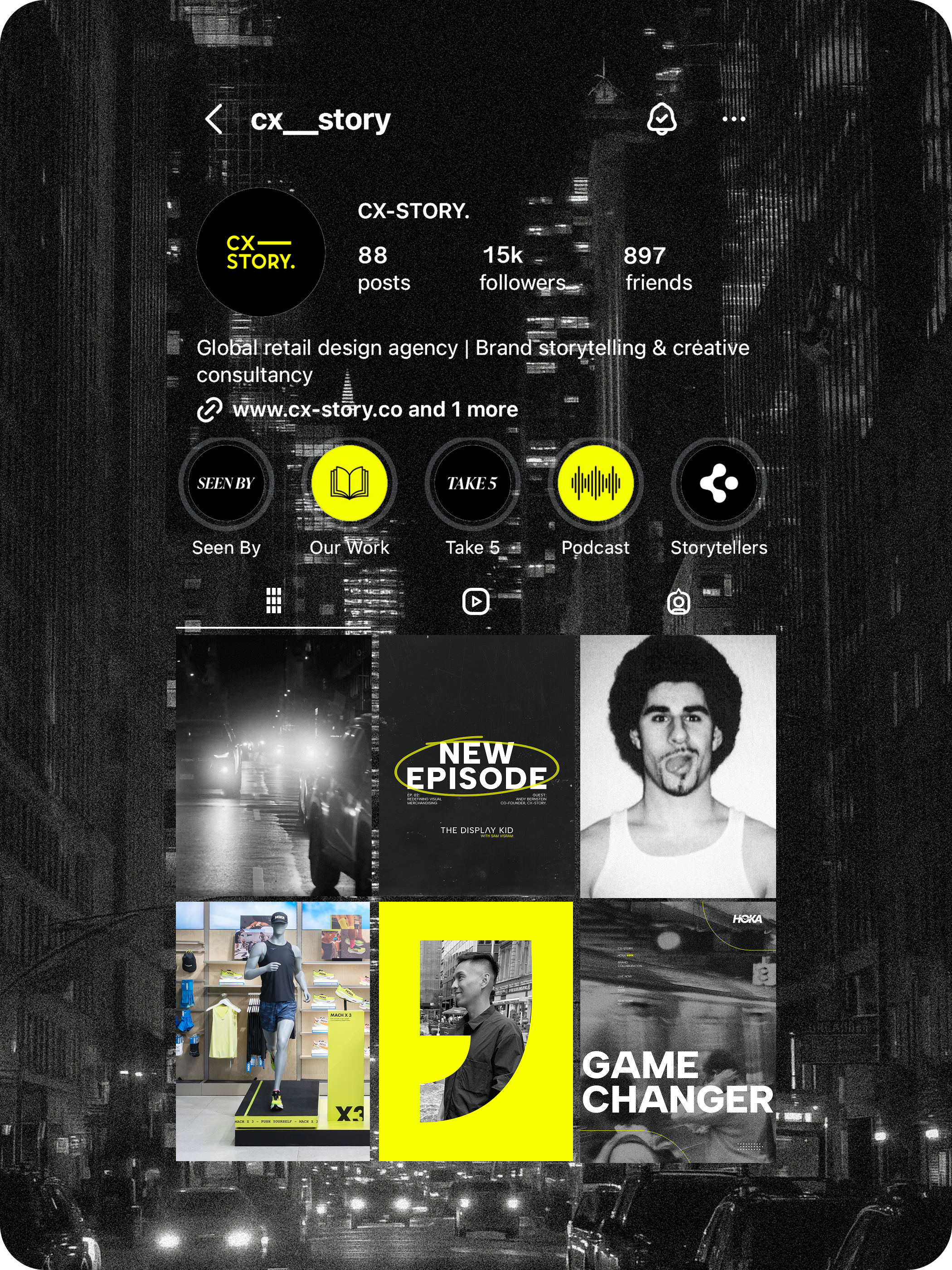 CX-STORY was built on one simple belief; brands don’t just need to be seen. They need to be felt. I joined the studio as a Graphic Designer and was later promoted to Digital Strategist, where I lead how CX-STORY shows up digitally, shaping the brand’s identity, voice, and visual language.